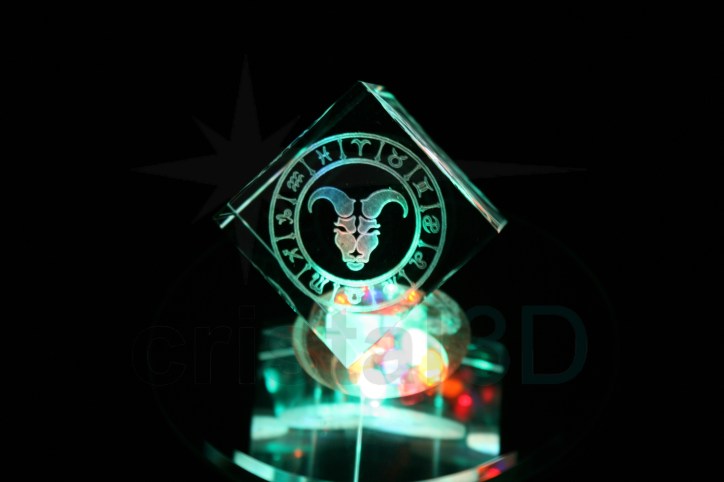 Horóscopos chino y tradicional, se pueden personalizar con el nombre y fecha de nacimiento del cliente, con o sin texto del signo zodiacal, la muestra está realizada sobre una pieza de 40x40x40 truncado. Este diseño se puede grabar en cualquiera de nuestros cristales.